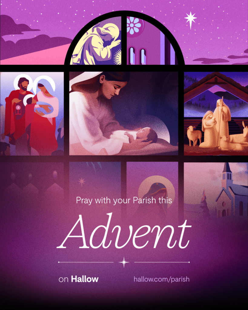 Visit hallow.com/parish, search by parish zip code. You’ll receive a special trial with full access to Hallow’s premium content. Prefer the free version? Just tap “Skip” — you’ll still have access to our parish page and the Advent prayer challenge.