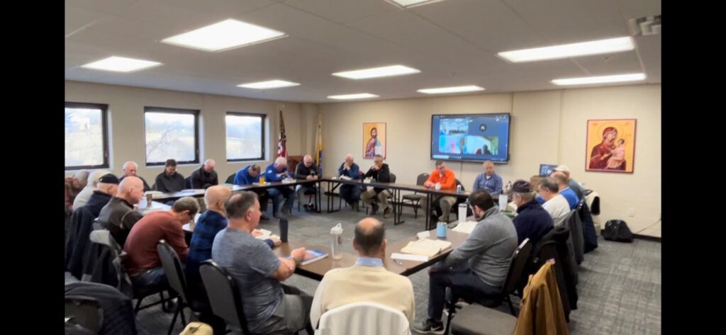 On retreat at St. Meinrad Archabbey, they did a video study, had time for prayer and reflection, experienced Holy Mass, and an evening of fellowship.